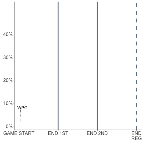 Now, to the animation. I relied on Ryo’s World Cup animations, which was rendered in gganimate, a R package for animations compatible with ggplot2. Unfortunately, unlike Ryo’s dataset, my dataset doesn’t contain coordinate data points with the location of each player over time. Rather, my Play-by-Play, Real Time Scoring System dataset contains shot location: